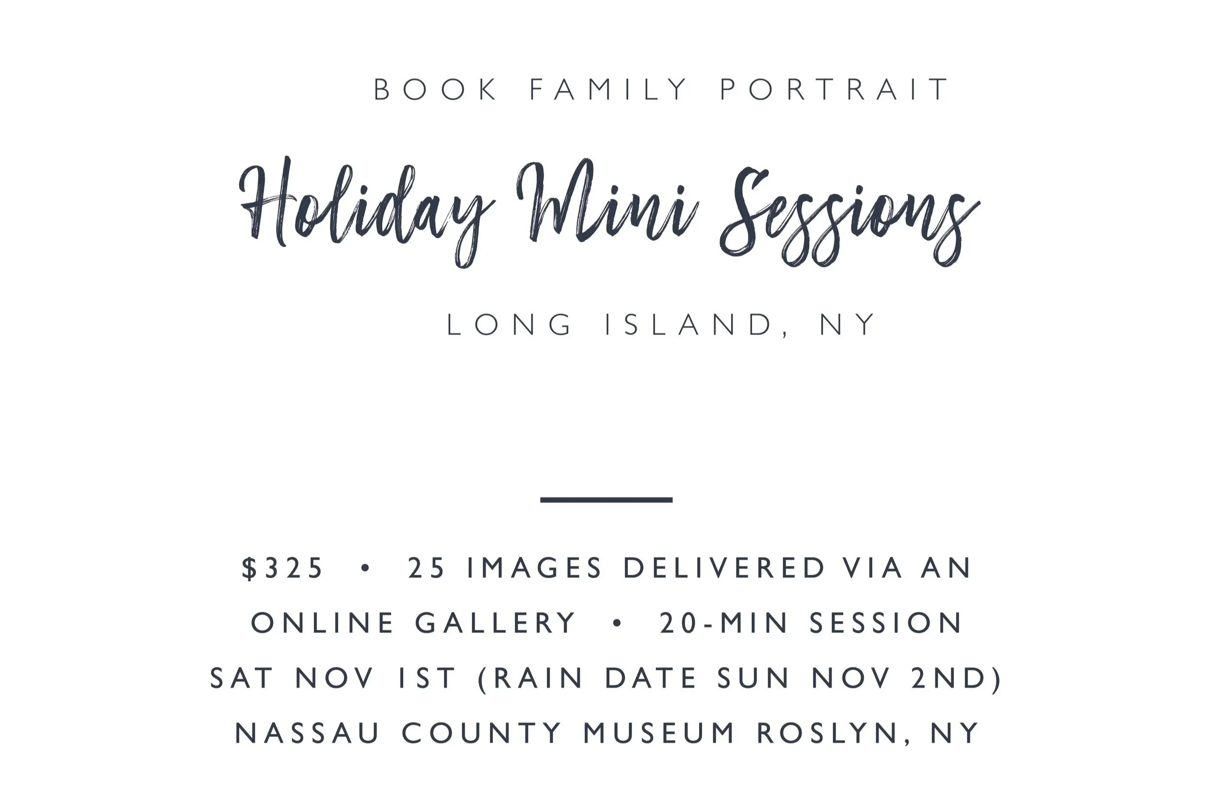 We are excited to offer one day of mini sessions in Long Island, NY this November 1st* and providing an online sign-up link for ease of scheduling.